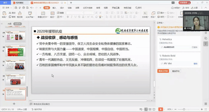 6月22日,我院教工党支部联合学生党支部采用线上形式开展“战‘疫'英雄面对面”主题讲座。活动邀请了第二附属医院ICU护士长曹艳茹、第一附属医院感染科副主任杨进孙、第一附属医院检验科冯钢三位老师分享他们的“疫”线故事。师生党员们表示要认真学习“抗疫”英雄们舍身忘我的奉献精神,用实际行动在学院事业发展、学生培养、教学科研等方面攻坚克难,发挥党员的先锋模范作用。