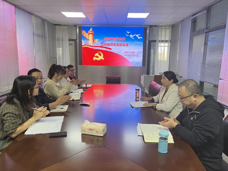 为深入贯彻落实习近平新时代中国特色社会主义思想和党的二十大精神,抓好政治理论武装,充分发挥思想政治引领作用,促进全体党员统一思想、凝聚共识,10月21日下午,我院党总支卫检教师党支部开展了主题党日活动。