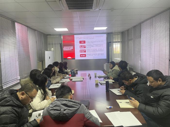 为深入学习和贯彻落实党的十九届六中全会精神,切实将思想和行动统一到全会精神上来,努力建设红色党组织,我院党总支开设学习贯彻党的十九届六中全会精神专题读书班。2022年1月12日,开班第一课由马克思主义学院江巍副教授在学院会议室作题为《学习贯彻党的十九届六中全会精神》宣讲。本次讲座由院党总支书记崔晓霞主持,我院全体教职工参加。