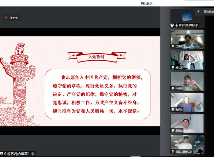 “我志愿加入中国共产党……随时准备为党和人民牺牲一切,永不叛党。”在支部书记的带领下,支部党员面对鲜红的党旗,共同高举右拳进行宣誓。铿锵有力的声音,表达了大家对党的无限忠诚、热爱和听党话、跟党走的坚定决心。