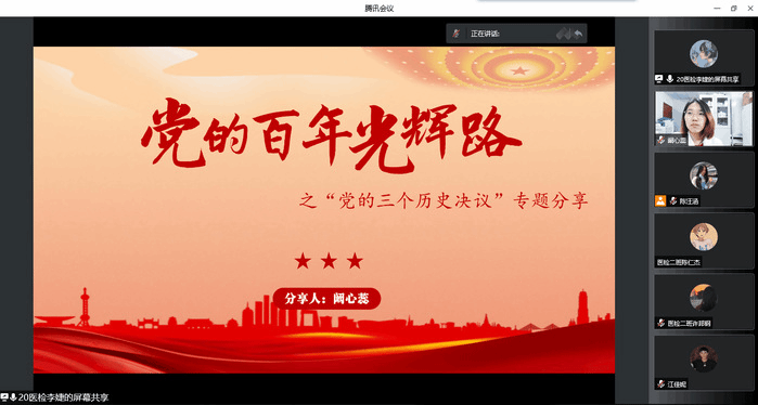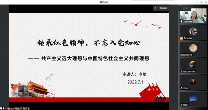 学生党员阚心蕊以《党的百年光辉路》为题,讲述了中国共产党成立101年历程中形成的三个历史决议及其形成的历史背景。学生党员李婕以《共产主义远大理想和中国特色社会主义共同理想》为题,讲述了共产主义远大理想和中国特色社会主义共同理想之间的关系,强调我们党之所以能够经受一次次挫折而又一次次奋起,是因为自中国共产党成立之日起,我们党就把共产主义确立为远大理想。不忘初心,继续前进,就要坚定共产主义远大理想和中国特色社会主义共同理想,不断把为崇高理想奋斗的伟大实践推向前进。