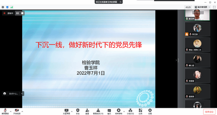 为充分发挥先进典型示范引领作用,激励广大师生党员见贤思齐、担当作为,2022年度优秀党务工作者曹玉祥和优秀学生党员国慧敏向支部师生党员分享先进事迹。曹玉祥讲述了自己在疫情期间下沉一线,做疫情防控先锋队员的难忘经历。国慧敏分享她从申请入党到成为一名正式党员中的心路历程。分享结束,同学们纷纷表示要向优秀党员看齐,永葆党员本色,时刻以一名优秀党员的标准严格要求自己,发挥先锋引领作用。