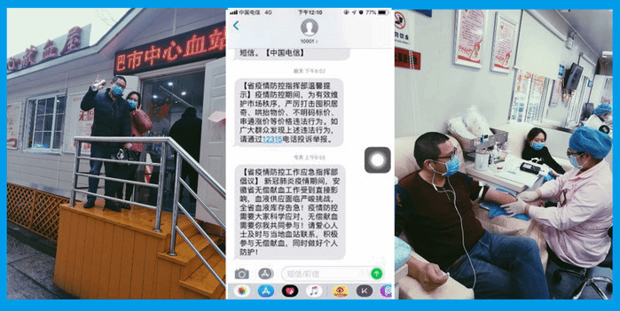 “这世上没有从天而降的英雄,只有挺身而出的凡人。”由于受疫情影响,安徽无偿献血受到严重影响,血液供应面临严峻挑战,全省血液库存告急。在此危急关头,16医检1班黄雨馨同学号召家人,一家三口,在第一时间前往当地血站献血。每个人都在奉献出自己的一份力量;每个人都在“战疫”中发挥着自己作用;每个人都在用实际行动向医务人员致敬,向武汉加油!
