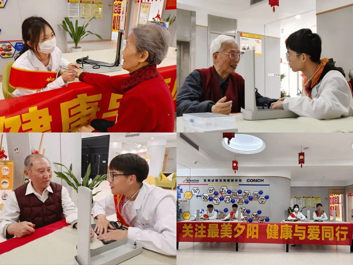 血压检测,服务健康。奉献之心励志于行,志愿者在大厅内为来往的老人进行血压测量,用扎实的专业知识细致地解答爷爷奶奶提出的问题,同时根据老人的健康状况和饮食习惯给出合理的建议,指导老人合理饮食、坚持锻炼,用实际行动关爱老人的身体健康。志愿者与老人相谈甚欢,其中一位老爷爷测完血压高兴地说:“谢谢你们来给我们测量血压,和我们聊天话家常,还让我们学到了很多的健康生活知识,我们感到十分开心。”