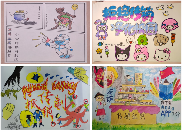 为加深学生对反传销的认识,帮助广大学生树立正确的价值观、财富观,提升同学们遵纪守法的意识,我院团委举办了以“反传销”为主题的文艺作品比赛。大家通过绘画、制作海报、拍摄宣传片等形式,将传销的多种骗局和危害形象地展现出来,体现了同学们对反传销的深刻理解和认识。经现场评审打分,此次比赛共评出一等奖1项、二等奖2项、三等奖3项。