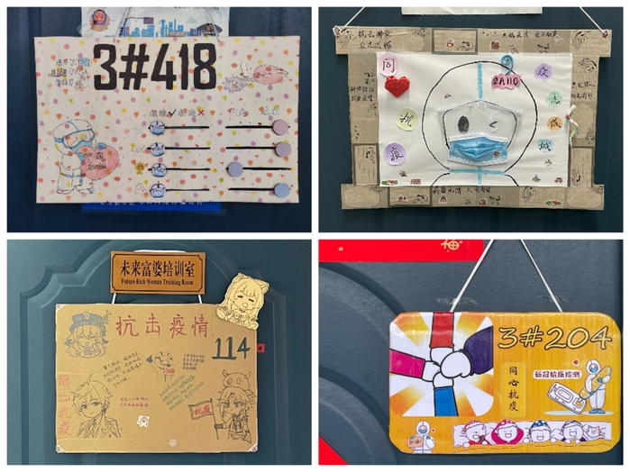 为增强宿舍凝聚力,展现各宿舍独特风采,我院学生会开展了以“同心抗疫”为主题的宿舍门标设计活动。在征集的多份作品中,同学们以小视角诠释大温暖,以小话题带动大世界,通过生动的作品、优美的文字讲出情感的温度与世界的美好。其中,有对疫情第一线的“战士”的致敬,有对祖国战“疫”必胜的决心,有对全国疫情清零的期待……一幅幅作品展现了检验学子积极向上、昂扬拼搏的精神风貌与对祖国的美好祝愿。