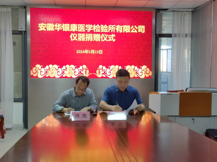 刘影总结时指出,安徽华银康向皖南医学院检验学院捐赠两台全自动医用PCR分析系统,将有力支撑学院的人才培养和科学研究工作,学院将继续加强与安徽华银康医学检验所有限公司的合作,不断提高人才培养质量。洪亮介绍了我院的发展情况,并感谢安徽华银康的捐赠以及对学院事业发展的支持,期待双方未来在各方面取得更大成绩。