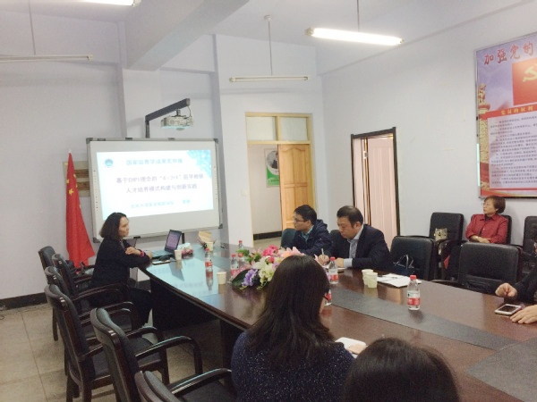 北华大学医学我院党委书记魏凤涛、院长夏薇等党政领导班子热情接待了我院一行。夏薇首先简要介绍了学院的总体情况和学院文化,并详细介绍了基于EHPI理念的“4×3+X”医学检验人才培养模式。我院考察组一行就实践教学改革、项目建设、师资队伍建设工作中存在的问题进行了说明,希望能够汲取兄弟院校的宝贵经验。双方就共同关心的办学定位及确立依据、人才培养目标和模式、师资队伍建设、教学改革和实践教学基地建设等问题进行了深入探讨和交流。
