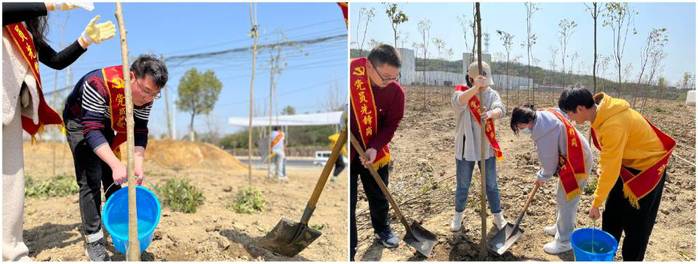 阳春三月,丽日晴空,暖风拂面。为贯彻落实习近平总书记“绿水青山就是金山银山”的绿色发展理念,提高支部党员环境保护意识,3月9日,在第44个植树节来临之际,我院党总支学生党支部在校师生党员参与由弋江区城市管理局主办的“为文明增绿,为弋江添彩”2022年弋江区义务植树活动。