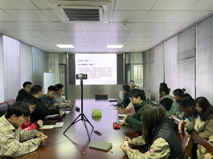 为深入贯彻习近平总书记关于深入学习党史、新中国史、改革开放史、社会主义发展史的重要指示精神,加强学生党员思想引领,深化爱国主义教育,我院学生党支部特邀学院党总支委员邵峰开展了一堂以《重温党的奋斗历程》为主题的专题党课。他从什么是“四史”、为什么要学习“四史”两个问题出发,带领同学们一同回顾了新民主主义革命理论的实践基础、形成过程及历史背景等数个关键问题,深刻阐述了红色政权来之不易、新中国来之不易、中国特色社会主义来之不易。他对在座学生党员提出殷切希望,希望同学们在中国共产党的正确领导下,高扬理想信念旗帜,做新时代有为青年。