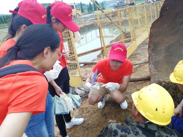 宿松县是在建安九高铁的经过地。近日连绵大雨,工人在野外工作条件恶劣,就有可能会接触到钉螺。在佐坝乡一处施工现场,我院“微光”志愿队队员向在场工人科普了血吸虫生活史、血吸虫病临床表现及危害等医学知识,提醒他们要注意防护,尽量穿长裤,不要接触有钉螺孳生的水域,保护好自身健康,为高铁的顺利完工做好健康保障。