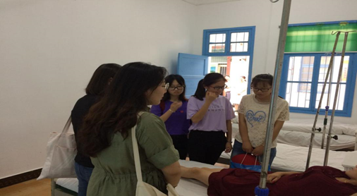 在宿松县血吸虫病防治站住院部,老师同学们看望慰问了正在接受治疗的血吸虫病患者,详细了解了他们的身体治疗和家庭生活情况,并给他们送去水果和夏季防暑降温的药品等,祝愿他们早日康复!对晚期血吸虫病患者救治是党和政府重视血防工作、关心晚期血吸虫病人的一项民生工程。目前,该站正在接受治疗的血吸虫病人共有30多人。