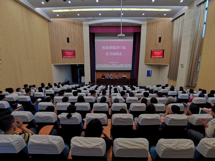 为进一步明确实习工作的意义,引导学生做好实习前的各项准备,确保2017级实习工作顺利开展,7月17日上午我院在逸夫科技楼一楼报告厅召开了2017级医学检验技术、卫生检验与检疫专业实习行前教育大会。我院副院长浦春、校保卫处副处长艾东、校医院院长刘海军、2017级辅导员和138名实习生参加了此次动员会,会议由我院学生工作秘书邵峰主持。