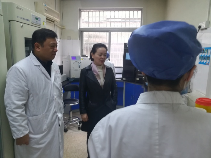 随后,在江明凤主任陪同下,浦春一行进行现场考察,先后参观了医院检验科本部及分部科室、学科组和办公场所,切实了解了医院的工作情况及实习生活环境。