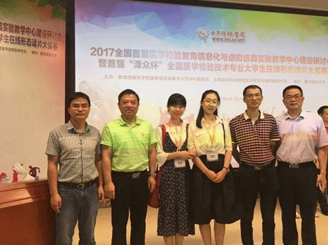 7月14日-16日,“2017全国首届医学检验教育信息化与虚拟仿真实验教学中心建设研讨会暨首届全国医学检验技术专业大学生形态读片大奖赛”在广州南方医科大学隆重举行,来自全国77所高校相关负责人、指导老师及参赛选手300余人参加会议。我校医学检验技术专业学生陆童、孙睿琦代表我校参加首届全国形态读片大赛。我院院长文育锋、临床检验诊断学教研室主任浦春、临床血液学教研室主任柳发虎等陪同参会。