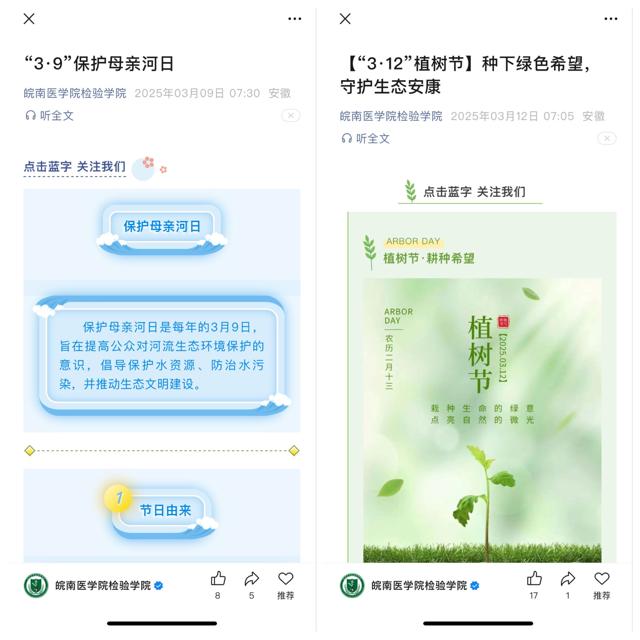 校园焕新展新颜,劳动育人树新风。3月9日、3月16日,学院学生会开展“美丽校园我先行”环境卫生提升行动。60余名志愿者分组对南区教学楼周边绿化带、马路等区域进行深度清理,重点整治卫生死角30余处,分类回收可循环垃圾30公斤,活动融入环保知识教育环节,将劳动教育与生态理念有机融合。同时,在微信公众号等网络平台,学院团委以“3.9保护母亲河日”“3.12植树节”等重要时间节点为契机开展生态文明宣传教育,倡导绿色生活方式,提高学生群体的环保意识。