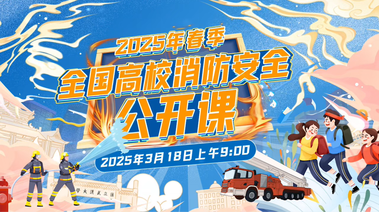 为做好高校消防安全工作,由国家消防救援局、教育部联合主办,湖北省消防救援总队、湖北省教育厅、武汉大学联合承办的2025年春季全国高校消防安全公开课于3月18日上午9点进行直播,我院组织全体师生参与学习。