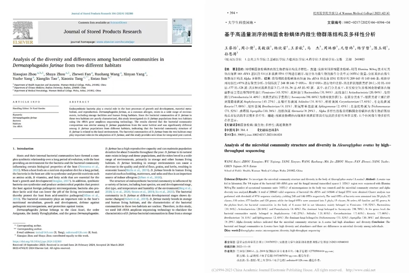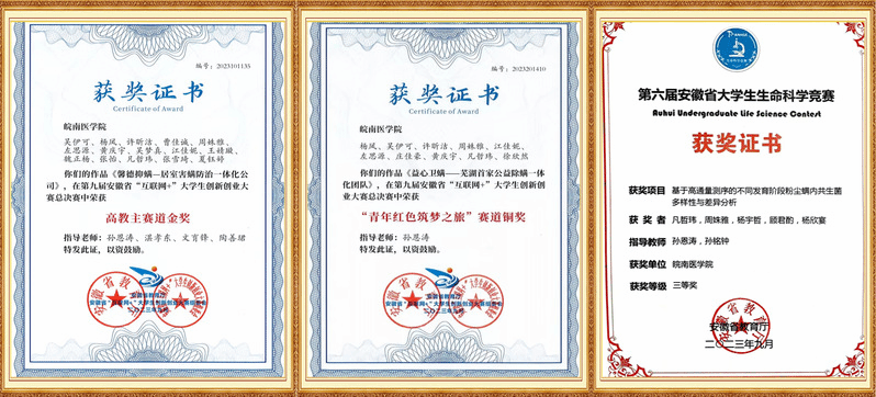 2024年4月她作为共同第一作者发表中科院二区SCI一篇(《Journal of Stored Products Research》),参与发表Ⅲ类中文论文一篇。此外,她主持2023年省级大创一项,积极参加创新创业类比赛,包括:第九届安徽省“互联网+”高教主赛道金奖、和第九届安徽省“互联网+”青年红色筑梦之旅赛道铜奖、第六届安徽省大学生生命科学竞赛三等奖、第十届安徽省“青苗杯•工商银行”铜奖,一项专利比赛获第十一届芜湖大学生专利创新创业大赛优秀奖和校级二等奖。