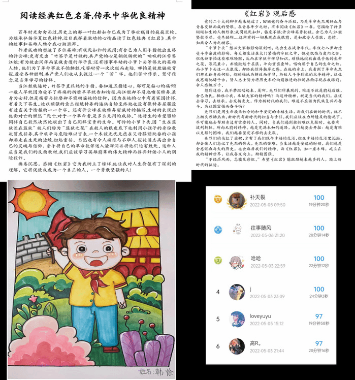 扬红色精神,绘红色历史。5月上旬,我院围绕“建团百年”和“五四青年节”主题,开展红色主题征文与绘画活动。参赛作品围绕歌颂党、歌颂祖国、歌颂青春,或回顾历史,或展望未来,语言铿锵有力,感情充沛自然,展现了我院学子争做德智体美劳全面发展新时代有为青年的决心。学院团员青年通过“今日校园”平台,完成党团知识竞赛的网络答题。通过本次竞赛重温历史,同学们坚定了为共产主义而奋斗的理想信念。