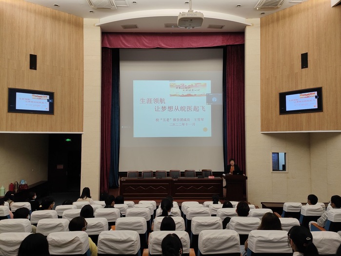 为帮助新生更好地适应大学生活,树立好人生目标,度过美好而充实的大学生活,11月3日,我院众禾学堂联合校关工委“五老”报告团成员王雪琴在逸夫科技楼一楼报告厅作“生涯领航——让梦想从皖医起飞”讲座。讲座采取线上、线下相结合的方式进行,我院党总支书记崔晓霞,2022级辅导员张琪及部分新生现场参会,会议由学院关工委秘书陶善珺主持。
