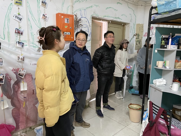 在走访在校三个年级的宿舍中,三位老师检查了宿舍安全卫生、排查违规电器。对同学们积极营造安全卫生、文明向上的寝室氛围给予肯定。洪亮亲切地与学生们交谈,了解大家在寒假期间的思想、学习、生活等各方面情况,叮嘱大家在校期间,如果遇到困难要及时与辅导员沟通。
