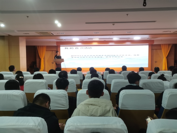 伴随着主持人的开场白,活动正式开始,参加评选的班级代表及个人根据抽签顺序依次上台。在“优良学风班”的评选过程中,班级代表借助精美的PPT,结合班级特点,围绕班级建设、学风建设、班级荣誉、特色工作四个方面,将各班的亮点和特色展示的精彩纷呈。在“优秀学子”的评选过程中,五位“优秀学子”候选人从专业学习、文艺活动、科技创新、社会实践等方面进行自我展示,向大家展现自己积极乐观、奋发向上的风采,赢得现场观众的阵阵掌声。