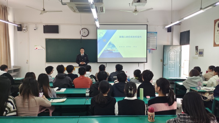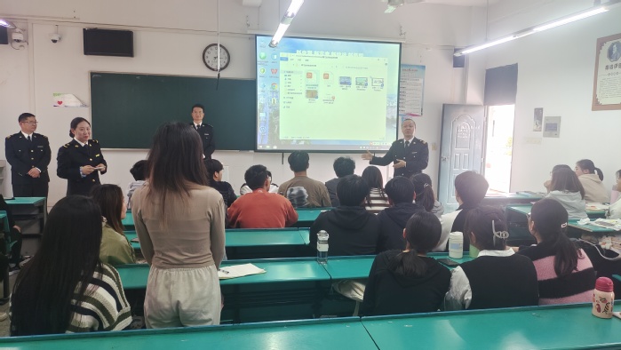 宣讲会上,杨彦为在场同学进行了卫生防疫宣传,讲解了一些常见的传染性疾病,并介绍海关工作范畴、就业机会等内容,为同学们描绘出了一幅广阔的职业发展蓝图。胡久会生动有趣地分享了工作日常、职业发展前景以及海关机构组成,帮助同学们全面了解海关各部门职能,为未来的职业规划做好准备。现场,同学们就职业规划的想法和疑惑与海关工作人员进行了深入交流。