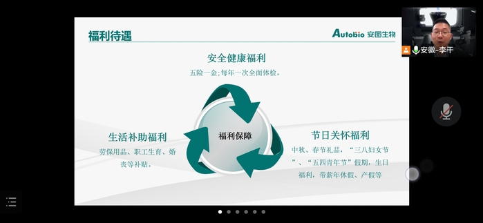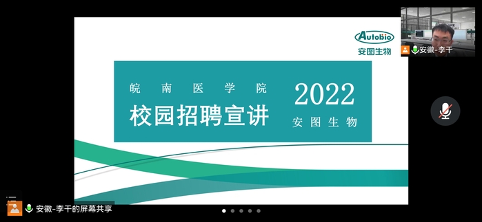 为进一步拓宽毕业生就业渠道,推进我院2022届毕业生就业工作,3月25日下午2:30,我院邀请郑州安图生物工程股份有限公司线上开展专场招聘会。我院毕业班辅导员曹玉祥及30余名2022届我院毕业生参加了招聘会。