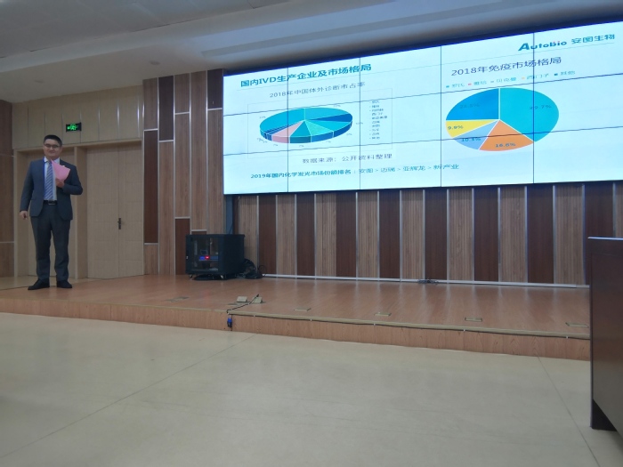 宣讲会上,安图生物客服区域经理刘杨以《体外诊断(IVD)行业发展前景与就业选择》为主题向同学们介绍了全球IVD行业发展现状与前景及IVD在中国的发展,并就公司概况、发展历程、人才管理体制、晋升体系及员工待遇等内容进行了详细介绍,展示了一个“关注品质、追求卓越、精良制造”的安图生物。通过与同学们进行现场互动的方式,让大家对体外诊断及检验专业就业选择有了更深入的了解。宣讲会结束后,同学们踊跃向该公司投递简历,随后,郑州安图生物工程股份有限公司对有就业意向的同学们进行了面试。