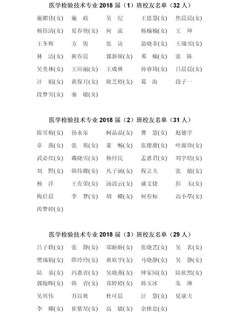 医学检验技术专业2018届校友名单
