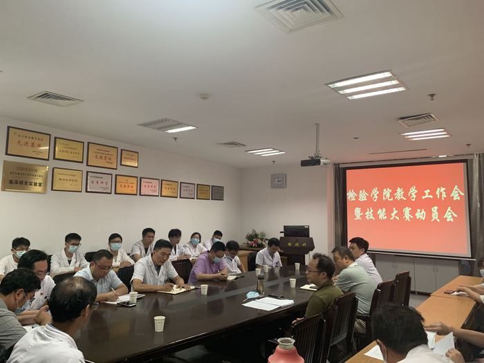 为切实加强学院教学工作,做好第二届华东六省一市“伊利康杯”大学生医学检验技能大赛选手的培训工作,充分调动教师与选手的参赛积极性。6月30日,我院院长洪亮携秘书和教研室主任一行赴一附院检验科召开教学工作暨技能大赛动员会。检验科教研室主任、秘书、部分老师及全体参赛学生参加会议。会议由洪亮主持。