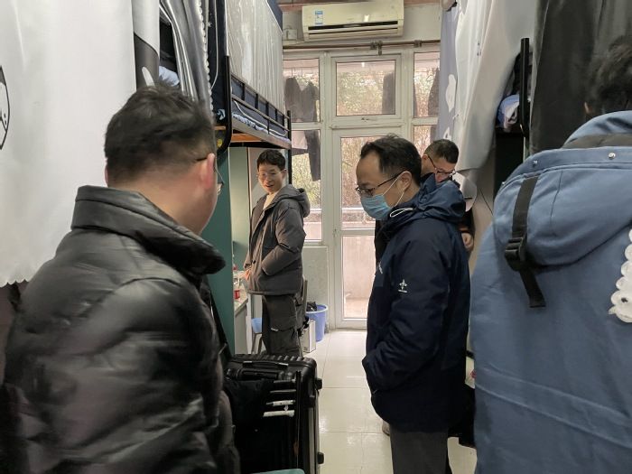 在走访在校三个年级的宿舍中,三位老师检查了宿舍安全卫生、排查违规电器。对同学们积极营造安全卫生、文明向上的寝室氛围给予肯定。洪亮亲切地与学生们交谈,了解大家在寒假期间的思想、学习、生活等各方面情况,叮嘱大家在校期间,如果遇到困难要及时与辅导员沟通。