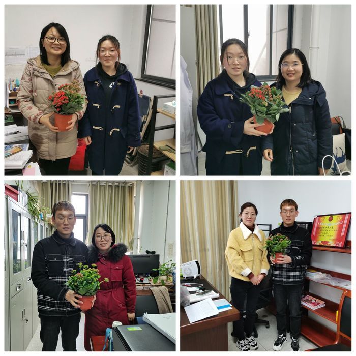 为表达对长期在一线教学的女教师们感恩之情,同时体现出“快乐工作,健康生活”的工作理念,我院团委为每位女教师送上了精美的盆栽,有寓意着师爱永恒的文竹,有代表“怀念、长寿、康宁”的剑兰,还有虽身处平凡的位置却将芳香挥洒人间的米兰等,每一株植物都蕴含着学生对老师们辛勤付出的感恩与祝福。