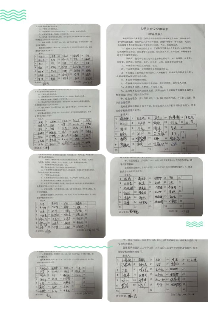 为规范学生宿舍管理,切实消除宿舍安全隐患,在寒潮来临前夕,我院2020级全体学生在辅导员张秦的带领下,认真学习宿舍安全管理规定、签署《大学宿舍安全承诺书》各班班委对2020级全体学生宿舍开展了安全检查。