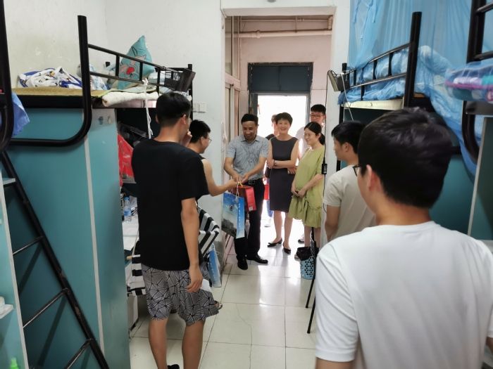 在端午佳节来临之际,6月24日下午,副院长徐朝阳到我院学生寝室走访第二批返校学生,向学生致以节日问候和祝福,并送上端午爱心礼包。我院党总支副书记、副院长崔晓霞、辅导员和学生工作秘书等人陪同。