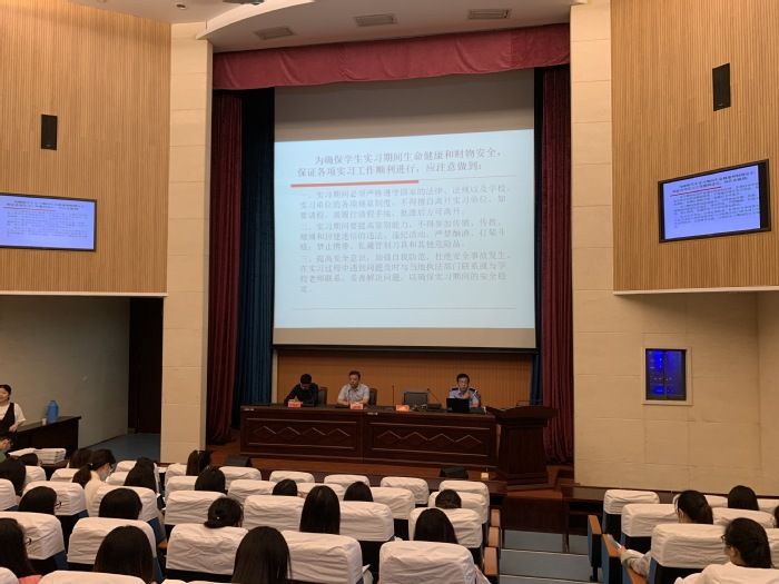 首先,艾东进行实习生安全教育,要求实习生要树立安全意识,提高风险防范能力。他从食品安全、交通安全、防火与消防安全、人生安全、财务安全等方面,结合安全事故案例,言简意赅、深入浅出,为同学们上了一堂生动的安全教育课。艾东强调,安全问题无小事,同学们务必牢记于心,时刻遵守学校和实习单位相关规定,确保人身财产安全。