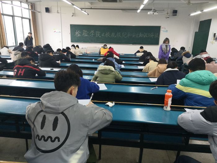 为使2019级新生全面了解我校学生管理规定,增强遵守校规校纪的自觉性,提高综合人文素质,2019年11月30日上午9点,我院在2404教室组织新生进行了《校规校纪和安全知识》考试。此次考试由我院团委学生会主席团成员监考,团委副书记曹玉祥巡考,全体2019级新生参加本次考试。