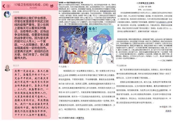 尽管这次学习活动是在网上展开,但是同学们的热情依旧不减,在这个特殊的三月,作为医学生更加明白了肩上的使命和担当,也坚信,在无数奋斗抗击疫情的医务工作者的努力下,必将“疫”去花开,春风徐来。