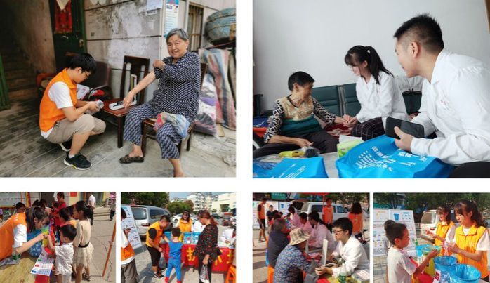 为大力弘扬敬老、爱老、护老的传统美德。同学们在社区干部的带领下,走入老人家中,为老人义务测量血压、讲解高血压等疾病预防和治疗的相关知识,并送上环保袋、毛巾、硫磺皂等生活日用品。随后,学生们以饱满的热情投入户外爱心义诊的活动中,以和善友好的态度为居民提供便民医疗服务,传递爱与热情。