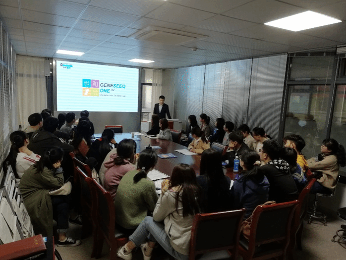 首先,文育锋对南京世和基因生物技术有限公司赵忞超一行表示欢迎,文育锋就我院专业建设、实践教学、校企合作、大学生双创教育等方面进行重点介绍。赵忞超介绍了南京世和基因生物技术有限公司的规模、发展历程、未来发展规划和岗位需求等情况,同时就本次招聘工资待遇、工作生活环境、职业发展空间等方面进行了有针对性的介绍,并对我院人才培养和校企合作表现出浓厚兴趣。