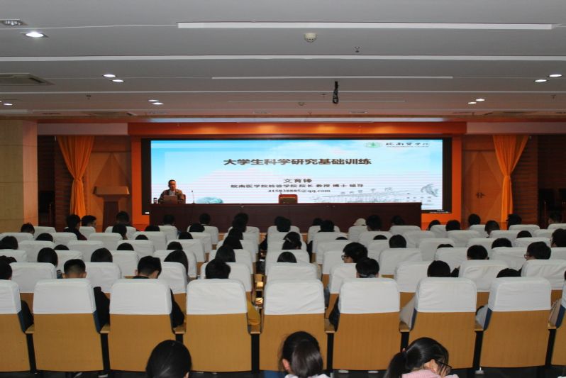 为贯彻落实立德树人,培养高素质创新型应用型人才,提高学生的科技创新素质,我院团委学生会特邀请我院院长文育锋教授于2018年11月12日晚上七点在图书馆三楼报告厅开展了大学生科学研究基础训练大会,我院全体同学参加了此次会议。