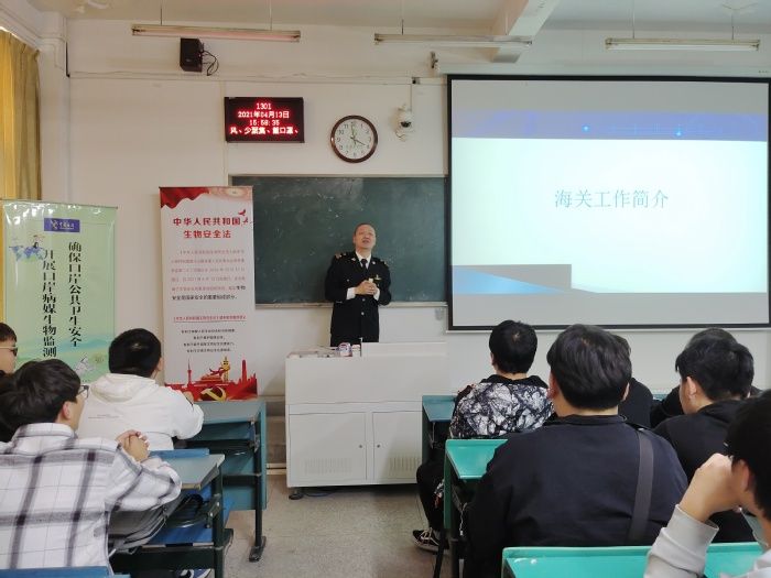 为提高学生生物安全意识、思想认识和行动自觉,4月13日下午,我院邀请芜湖海关在1301教室开展国门生物安全知识讲座,本次讲座由辅导员张秦主持,卫生检验与检疫教研室主任孙恩涛教授、20级医学检验技术和卫生检验与检疫全体学生参加。
