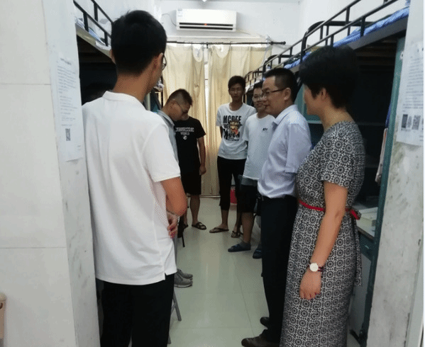 为进一步了解学院新生生活情况,帮助新生尽快适应新环境,加强新生宿舍管理,9月3日下午学院领导和新生辅导员曹玉祥走访了我院新生宿舍,亲切地与每一位新生交流。其间崔晓霞多次强调安全问题,让同学们谨防推销,时刻注意自身财务安全,遇到突发情况要及时向老师反映。文育锋要求同学们做好新学期的规划,及时适应大学的学习方式。并询问从新生入校以来对学校、对学院的感受,到生活习惯、饮食习惯的适应;从个人兴趣、个人特长的了解,到为院争光、为校争光的期望,无不凝聚着学院领导对所有新生的关心,也拉近了老师与学生间的距离,2018级新生对老师们的关心表示感谢。