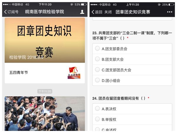 2018年5月4日,值第68个五四青年节来临之际,为深入贯彻落实党的十九大精神,继承和发扬五四运动的光荣传统,我院团委利用学院微信公众号组织开展了五四青年节团章团史知识竞赛,2016级、2017级全体共青团员参加了本次活动。