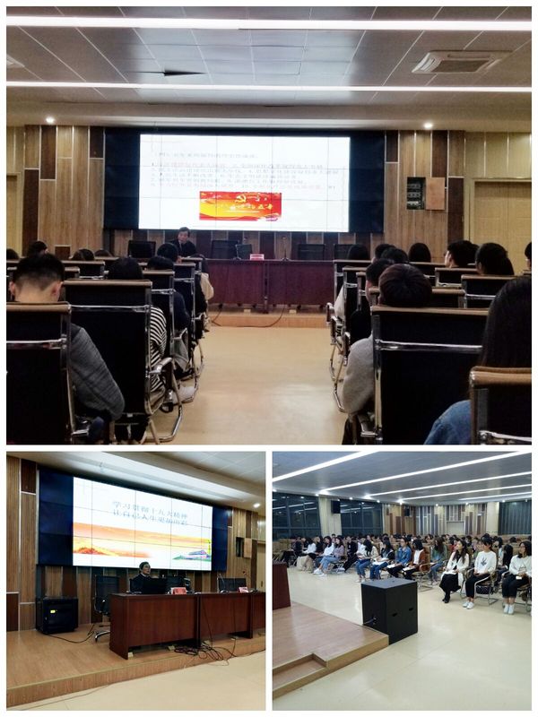 “青年兴则国家兴,青年强则国家强”。为深入学习贯彻党的十九大精神,2018年4月9日晚上7点,由关工委常务副主任周强老师主讲的“学习贯彻十九大精神,让自己人生更加出彩”在4号实验楼二楼报告厅顺利进行,参加讲座的有我院团委副书记都芳、第十期青马班全体学员、十九大学生学习小组成员以及学生第二党支部党员、发展对象、入党积极分子共计118人。讲座由学院党总支副书记崔晓霞主持。