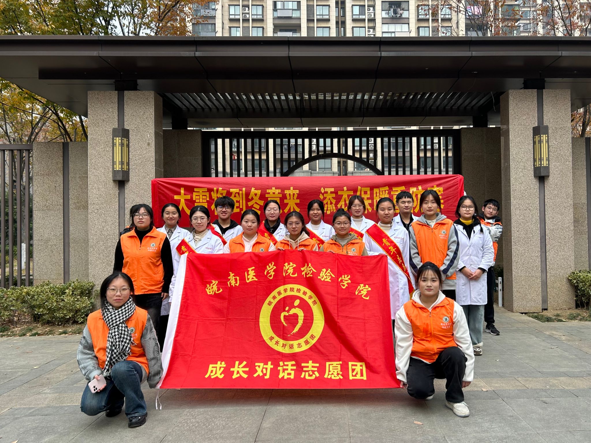 随着冬季的脚步日益临近,大雪节气也悄然将至。为提高公众对冬季防寒保暖,预防常见疾病重要性的认识,我院成长对话志愿团于12月7日前往弋江区翰林公馆开展以“大雪将到冬意来,添衣保暖重防寒”为主题的志愿活动。旨在为社区居民送上贴心关怀与健康守护,传递冬日温情。