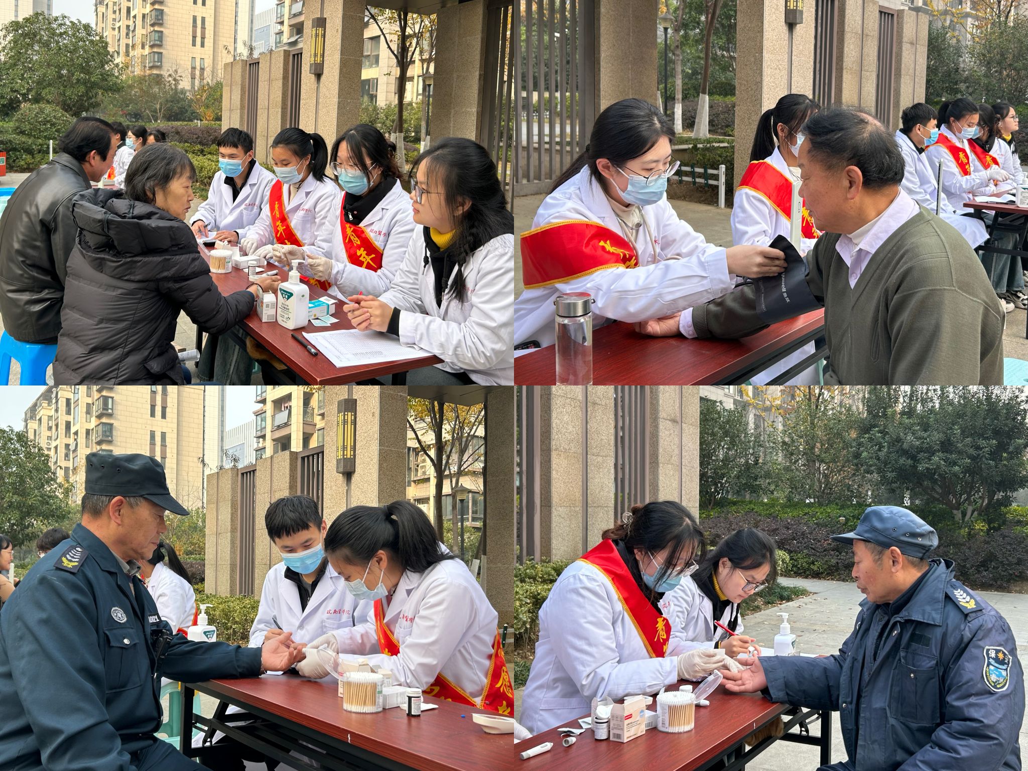 爱心检测送关怀,暖心话语护健康。为帮助社区居民更好地了解自身健康状况,志愿者们在活动场地搭建检测台,开展爱心义诊活动,为居民们测量血压和血糖。同时根据测量结果、身体情况和生活习惯提出切实可行的健康建议。提醒居民们按时吃药、注意饮食、适量运动。在义诊过程,一位爷爷说:“太感谢你们了,这么冷的天还来给我们测血压。”志愿者们的热情与耐心赢得居民们的一致好评。