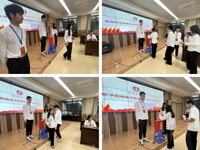 我院学生会主席团成员吴梦真同学代表上一届学生会作工作汇报。大会听取并审议了由大会工作筹备组侯非凡同学宣读的《77779193永利官网第四次学生代表大会选举办法(草案)》、由主席团候选人李艳同学宣读的《关于77779193永利官网第三届学生委员会工作报告的决议(草案)》。大会本着公平、公正、公开的原则选举并产生我院第四届学生会主席团成员和参加校第十六次学生代表大会代表。