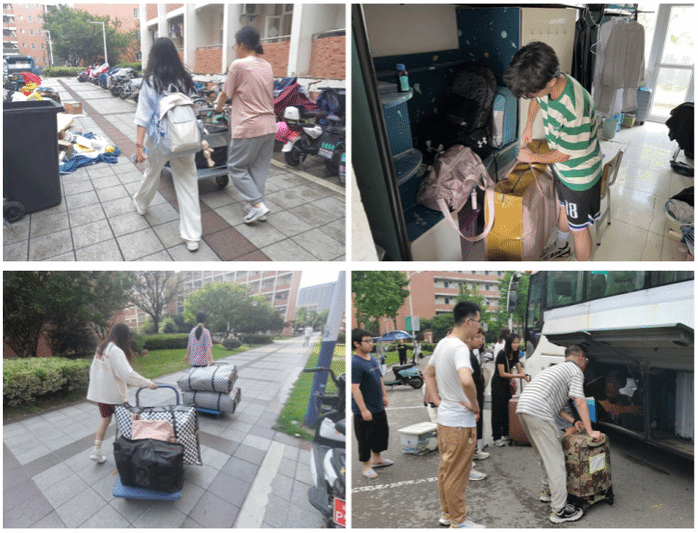 精准帮扶,发扬传统。6月20日清晨,学院低年级学生志愿者积极参加“一对一”精准帮扶活动,主动前往实习生寝室,帮助整理物品,解决行李搬运难题,保证每位实习生放心无忧地离校。辅导员张秦在校门口与实习生逐一告别,目送一辆辆大巴车驶离学校,奔赴南京、无锡、杭州、宁波、舟山、亳州、阜阳和合肥等地实习单位。