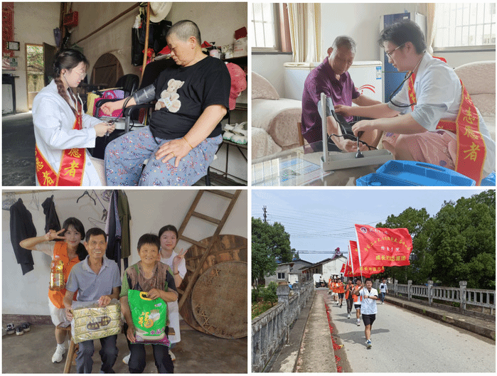 入户慰问,真情传递。在社区工作人员的带领下,志愿者分别前往退伍老兵和退休党员的家中,为他们测量血压,了解身体状况,提出合理建议,并聆听他们的光荣事迹,送上生活慰问品。志愿者用热心、真心为村民送去了爱心,让村民们切实感受到了真情与温暖。